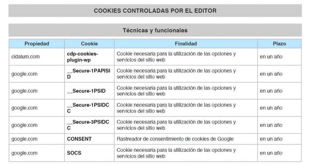 Conforme con la Ley 34/2002, de 11 de julio, de servicios de la sociedad de la información y de comercio electrónico (LSSI), en relación con el Reglamento (UE) 2016/679 del Parlamento Europeo y del Consejo, de 27 de abril de 2016, General de Protección de Datos (GDPR) y la Ley Orgánica 3/2018, de 5 de diciembre, de Protección de Datos y Garantía de los Derechos Digitales (LOPDGDD), es obligado obtener el consentimiento expreso del usuario de todas las páginas web que usan cookies prescindibles, antes de que este navegue por ellas.