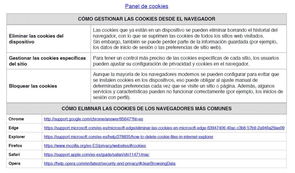 PANEL DE CONFIGURACIÓN DE COOKIES